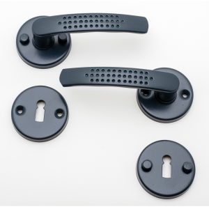 Poignée de porte Elona gris 7016 sur rosace ronde trou clé
