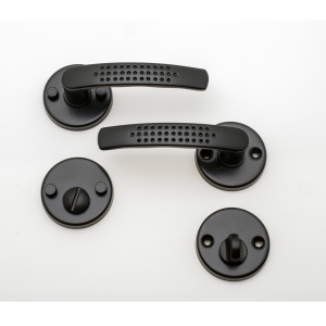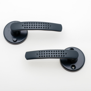 Poignée de porte Elona noir sur rosace ronde condamnation
