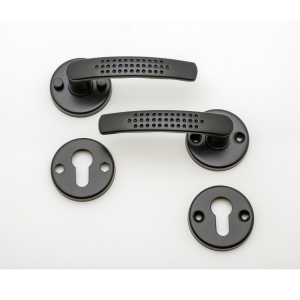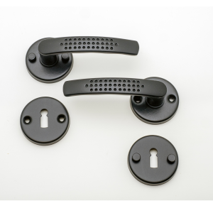 Poignée de porte Elona noir sur rosace ronde trou clé