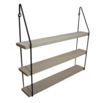 Support étagère murale triple noir 10 est un support en fer rond de diamètre 6 mm de hauteur 67 cm x largeur 11 cm.