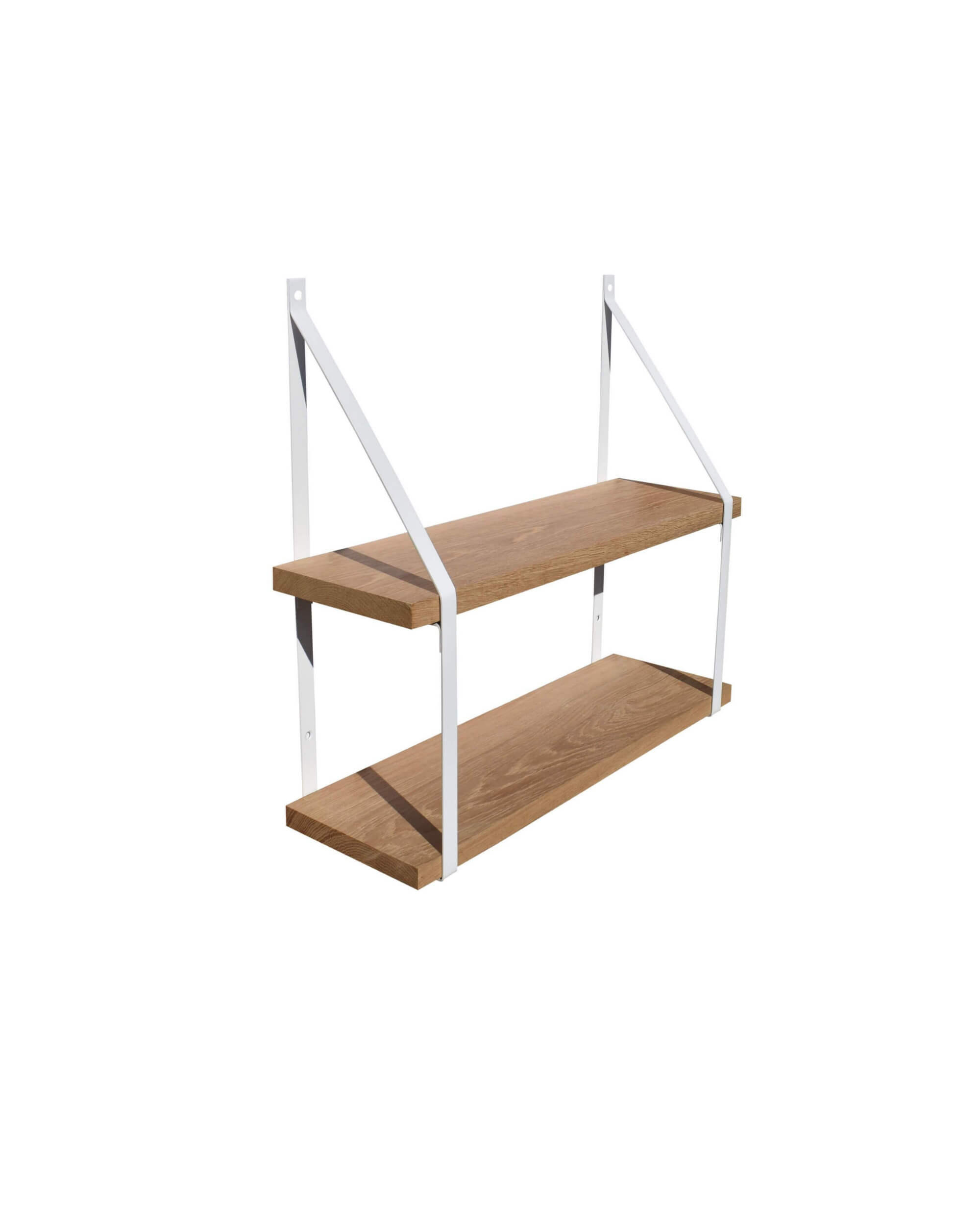 Support étagère murale double Cali 19 blanc est un support en fer méplat (20 mm) de hauteur 51 cm x largeur 20 cm.
